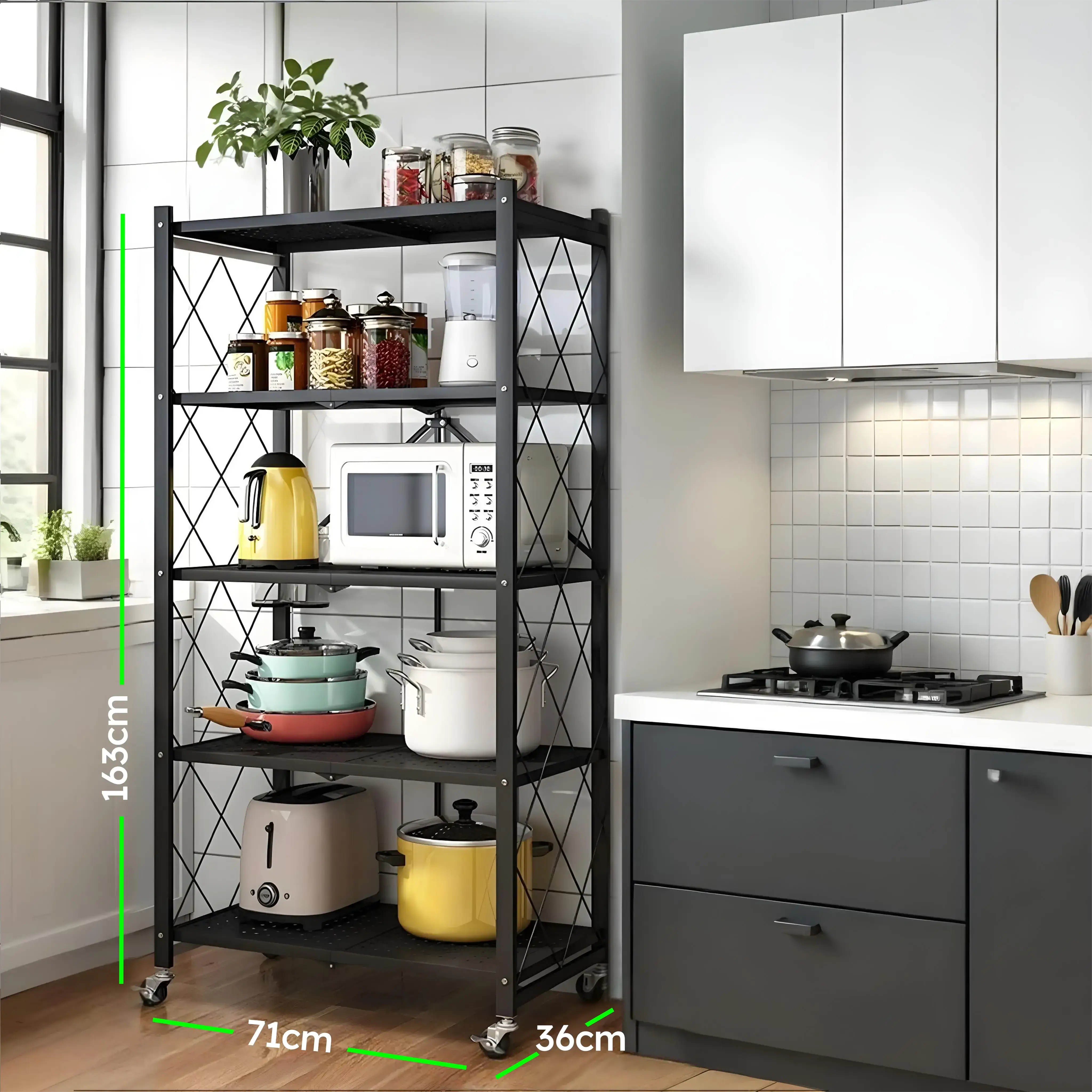 Estante de Cocina 50x30x138cm con Espacio para Microondas y Almacenaje