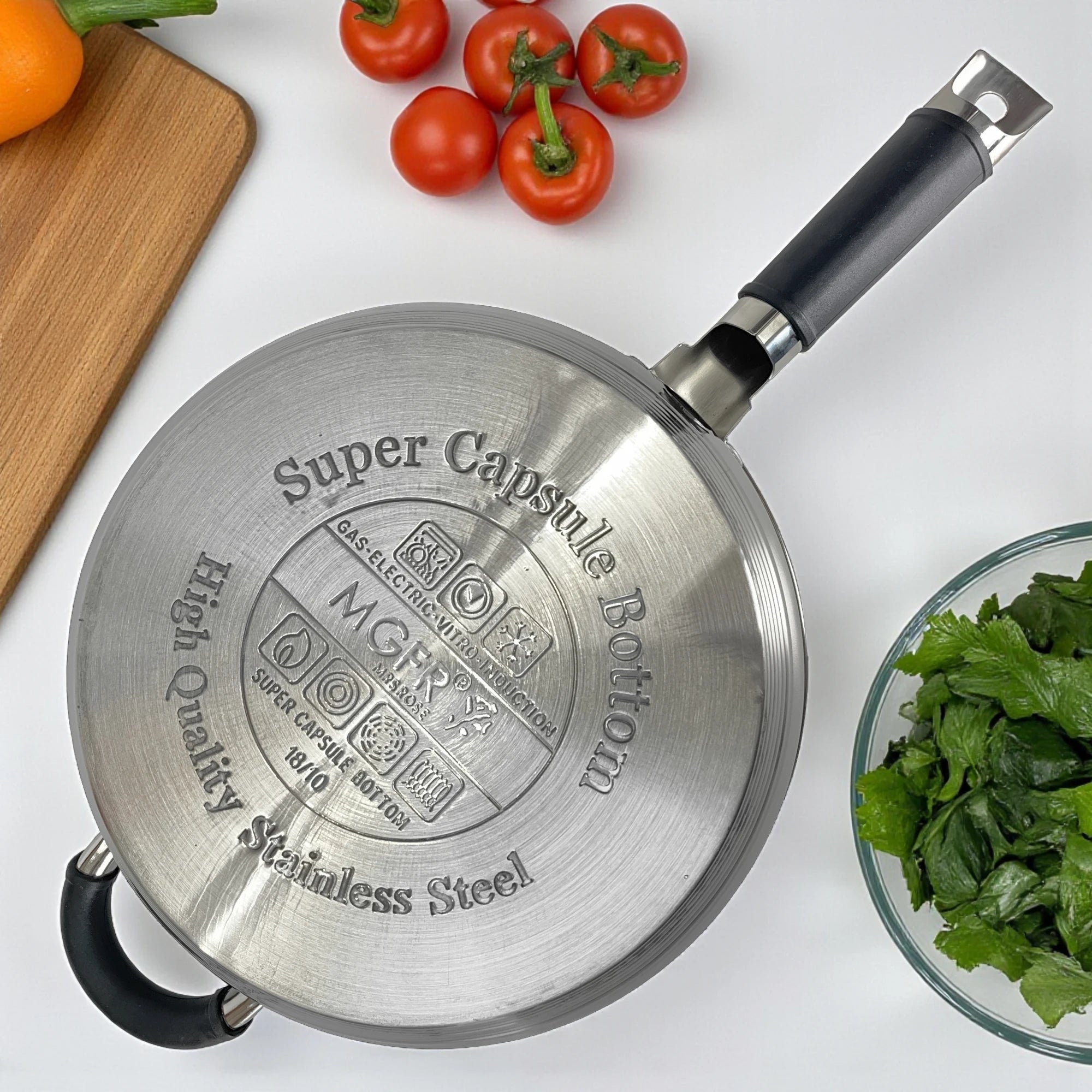 No es recomendable cocinar a fuego alto por periodos prolongados, ya que podría manchar el acero o deformar el antiadherente. El diseño multicapa permite cocinar perfectamente a fuego medio o bajo, ahorrando energía.