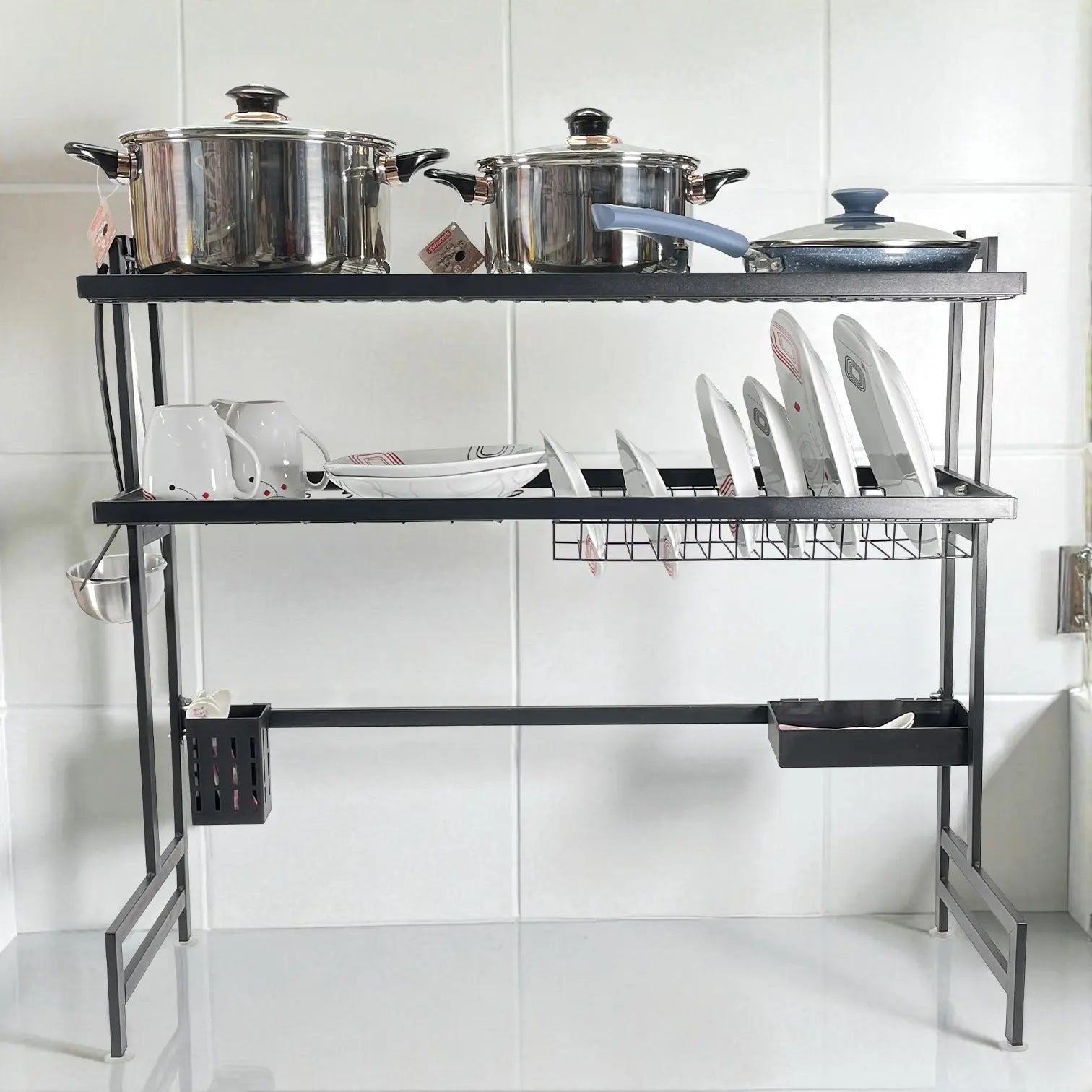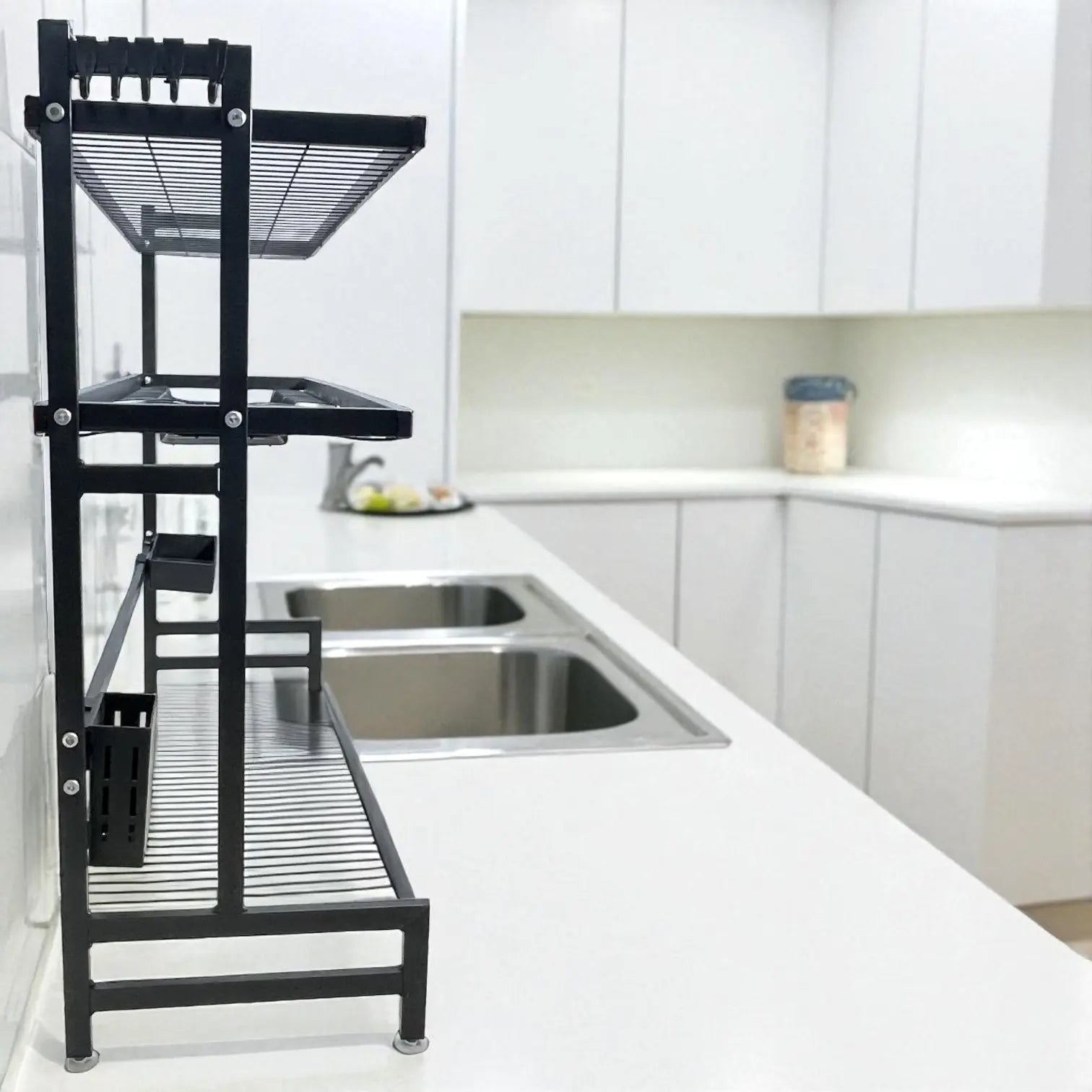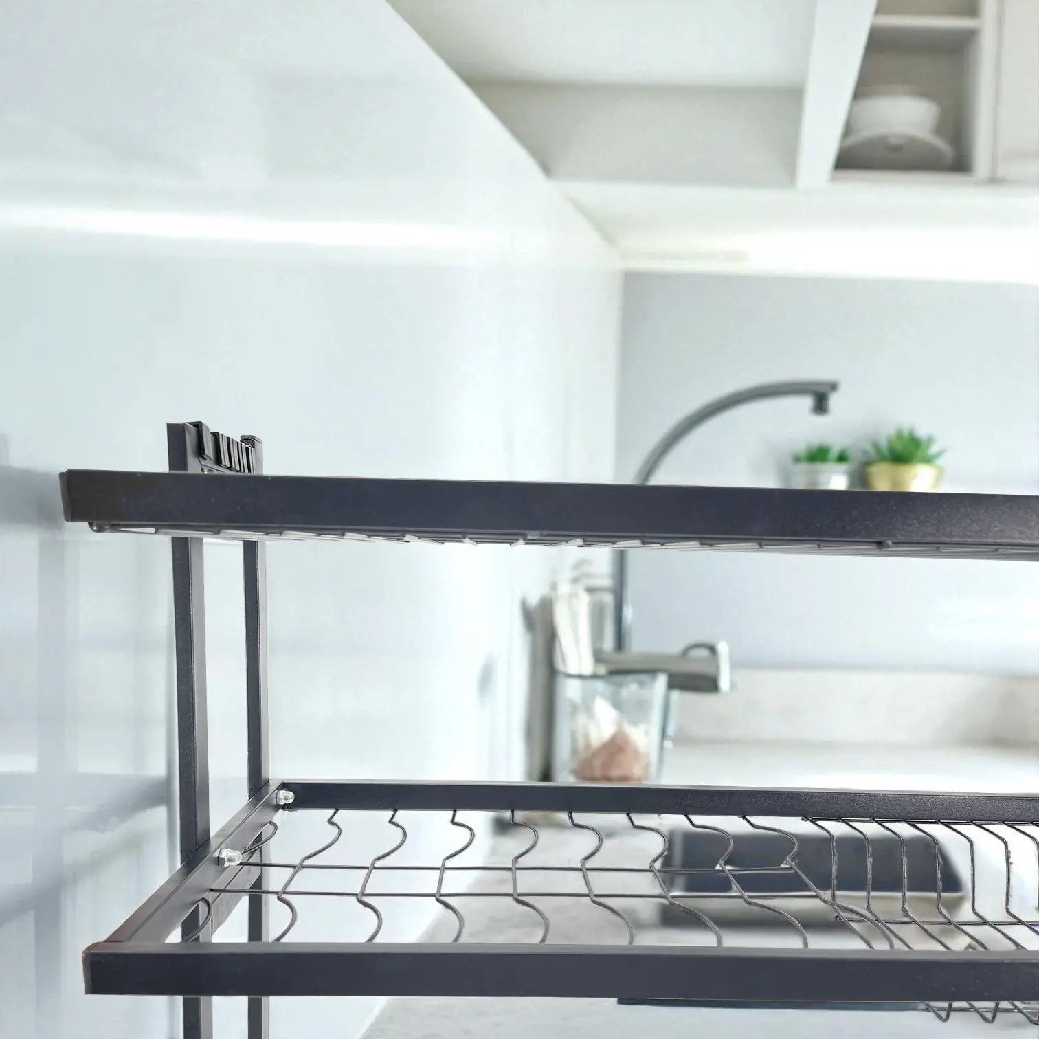 Mantén tu cocina siempre ordenada y seca con el Escurridor de Platos de Dos Niveles MISOL, fabricado en acero resistente de color negro con un diseño moderno y funcional. Sus medidas de 84 cm de ancho, 30 cm de fondo y 75 cm de alto lo hacen ideal para colocar sobre el fregadero, aprovechando al máximo el espacio vertical.