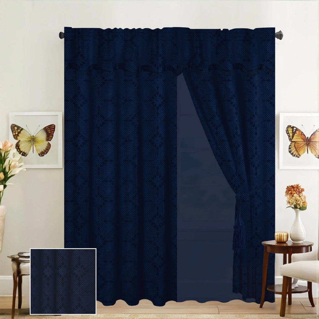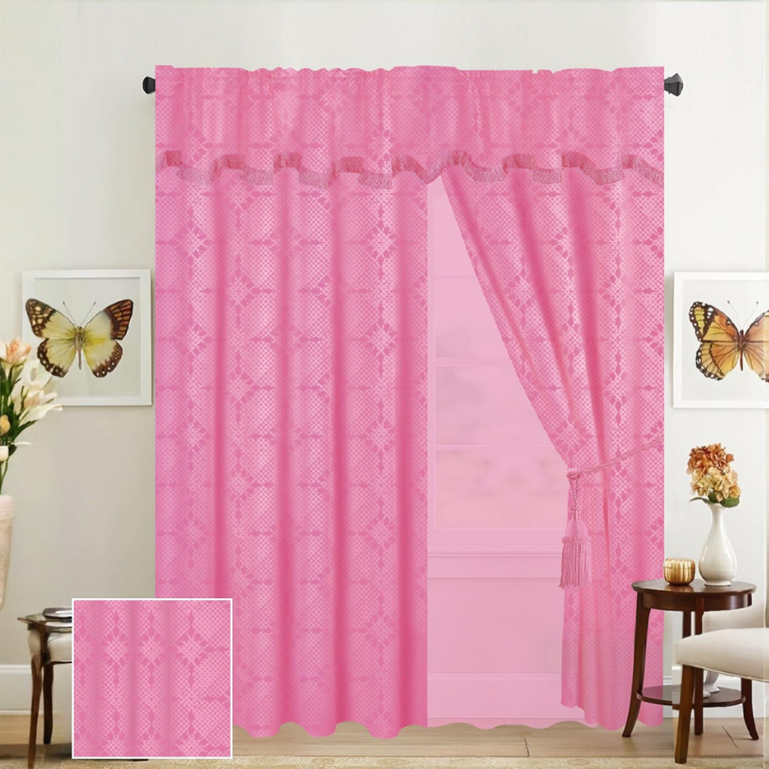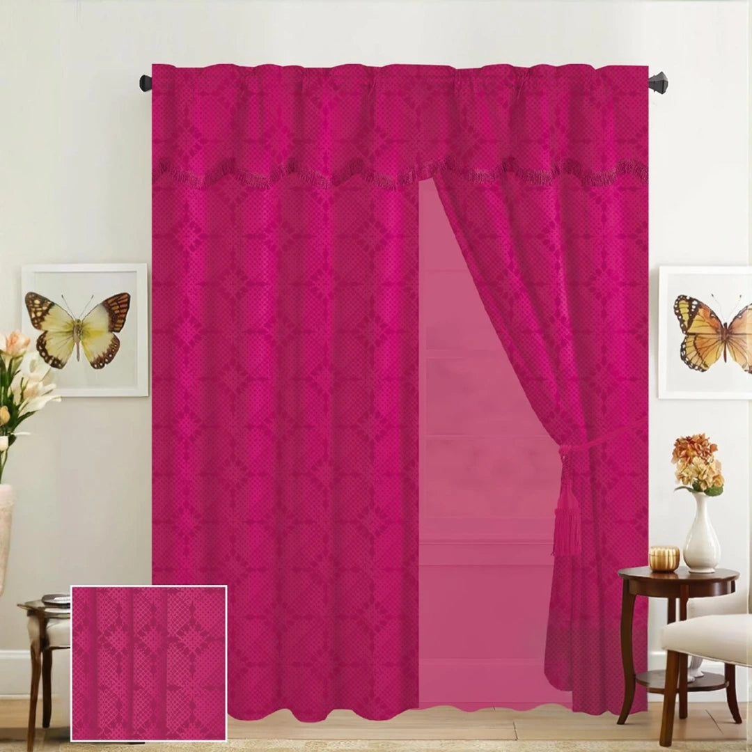 Este juego de cortinas está diseñado para transformar tus espacios con elegancia y estilo. Su diseño clásico con velo incluido no solo decora, sino que también brinda privacidad sin oscurecer por completo la habitación.