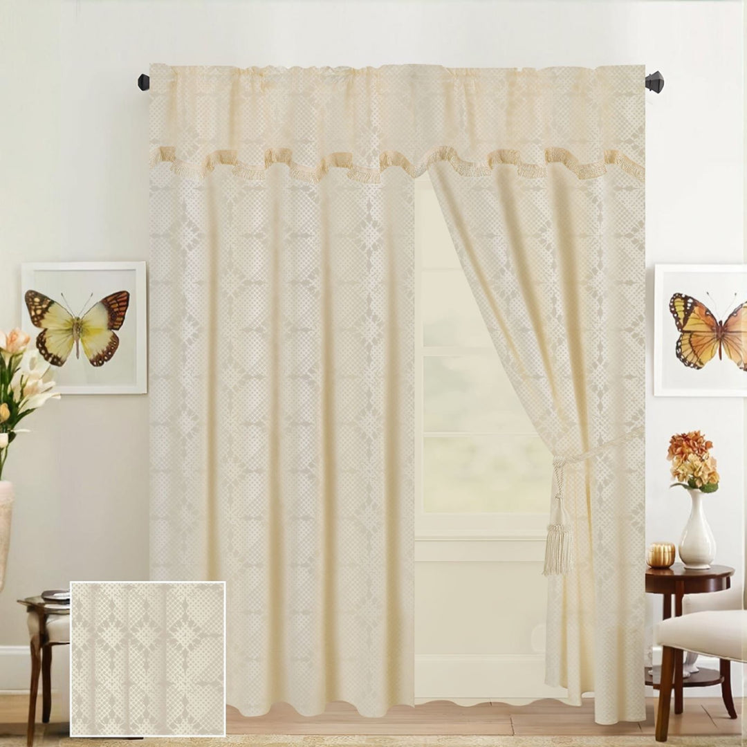 Juego de Cortinas con Velo y Borlas – 2 Piezas, 270x215 cm – Avestruz Collection