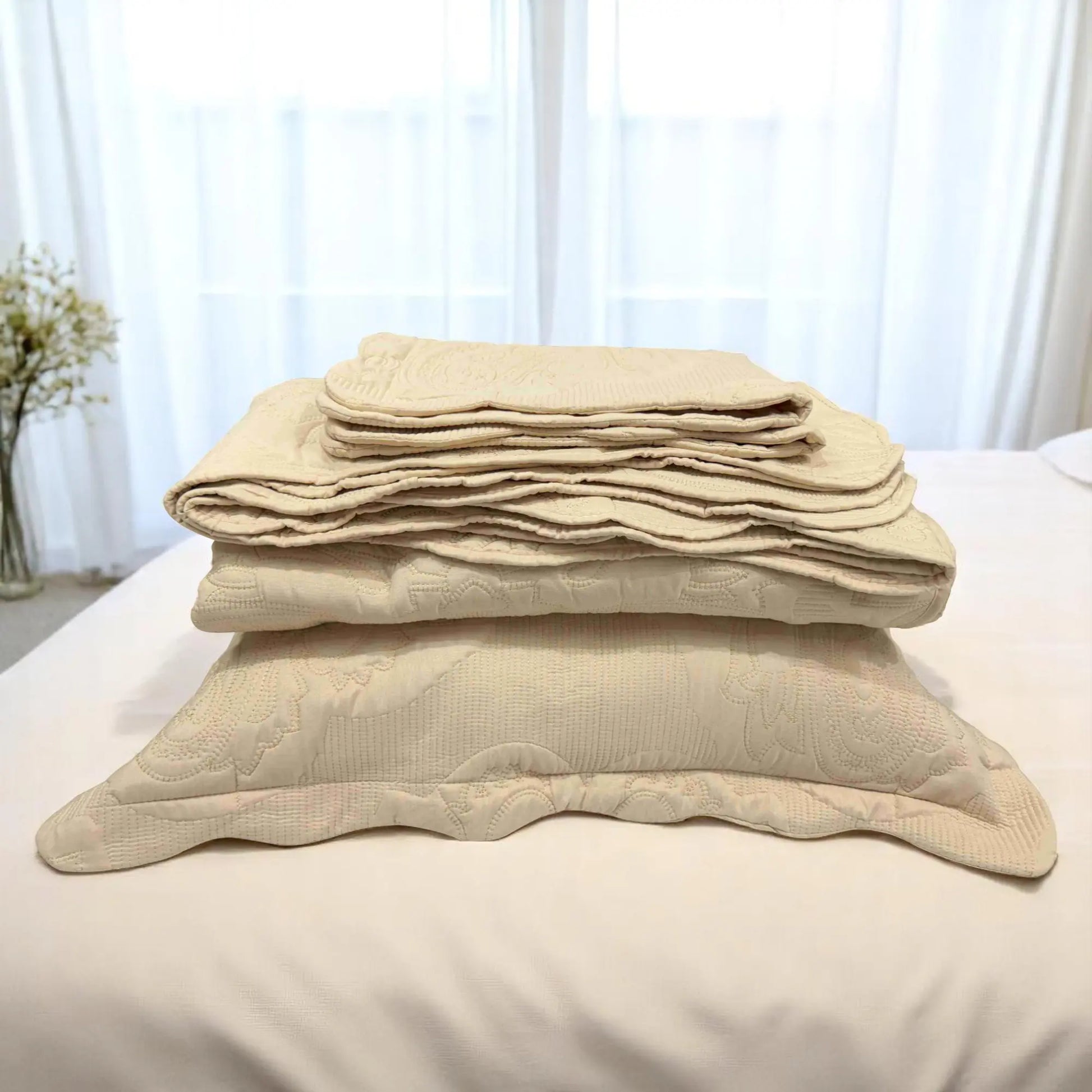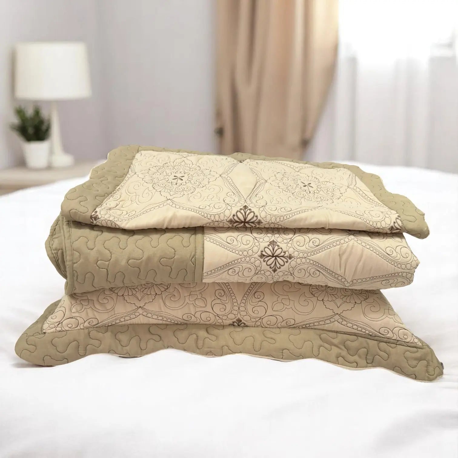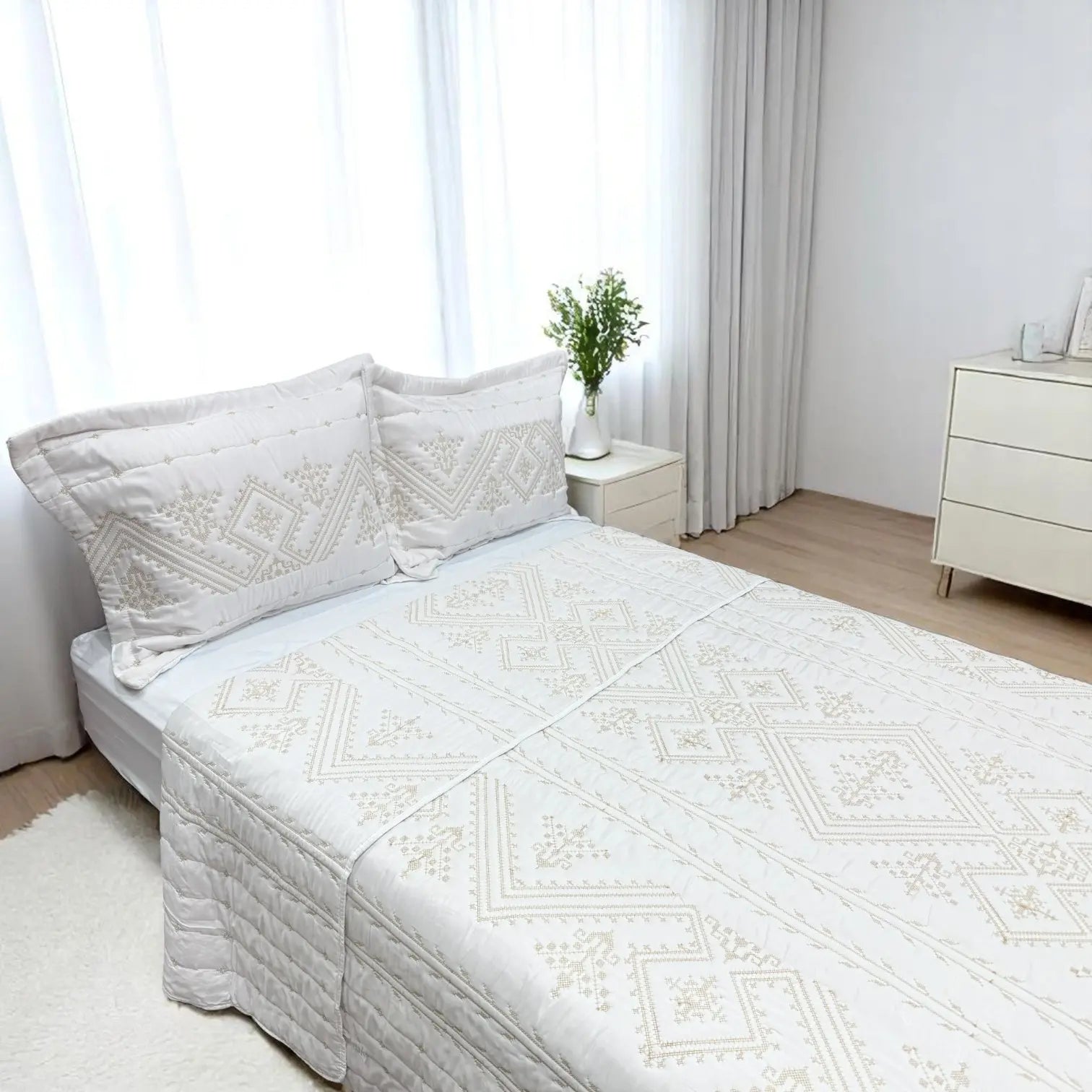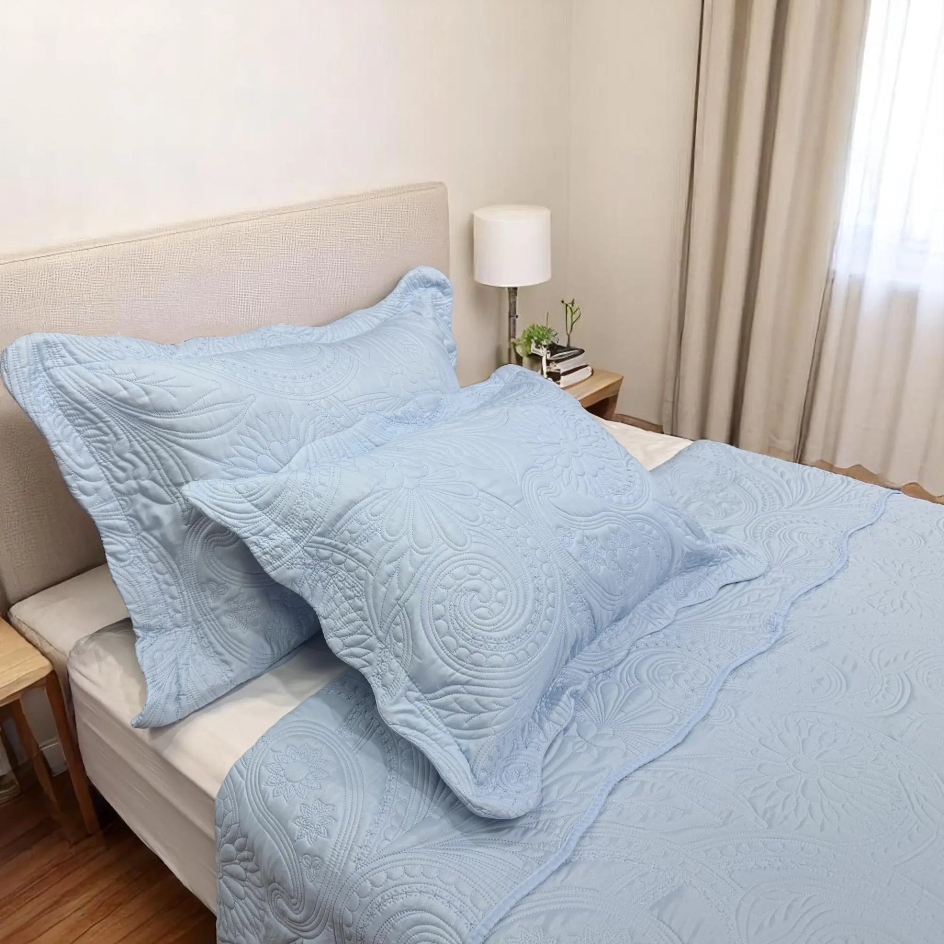 Las fundas de almohada incluidas combinan perfectamente con el cubrecama, creando una presentación uniforme y acogedora. Además, su material es fácil de lavar y de secado rápido, lo que te permite mantenerlo impecable sin complicaciones. Ideal para quienes buscan estilo, comodidad y practicidad en un solo set.