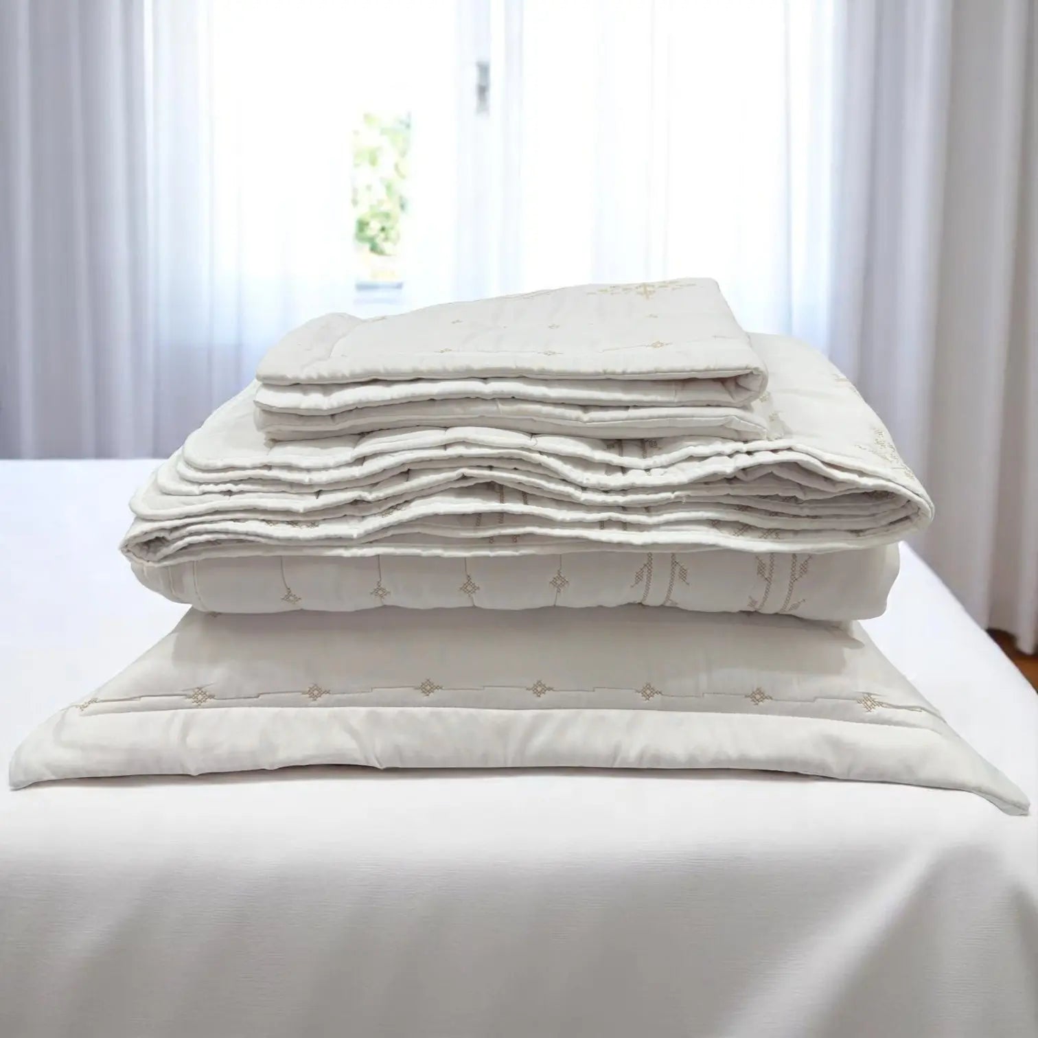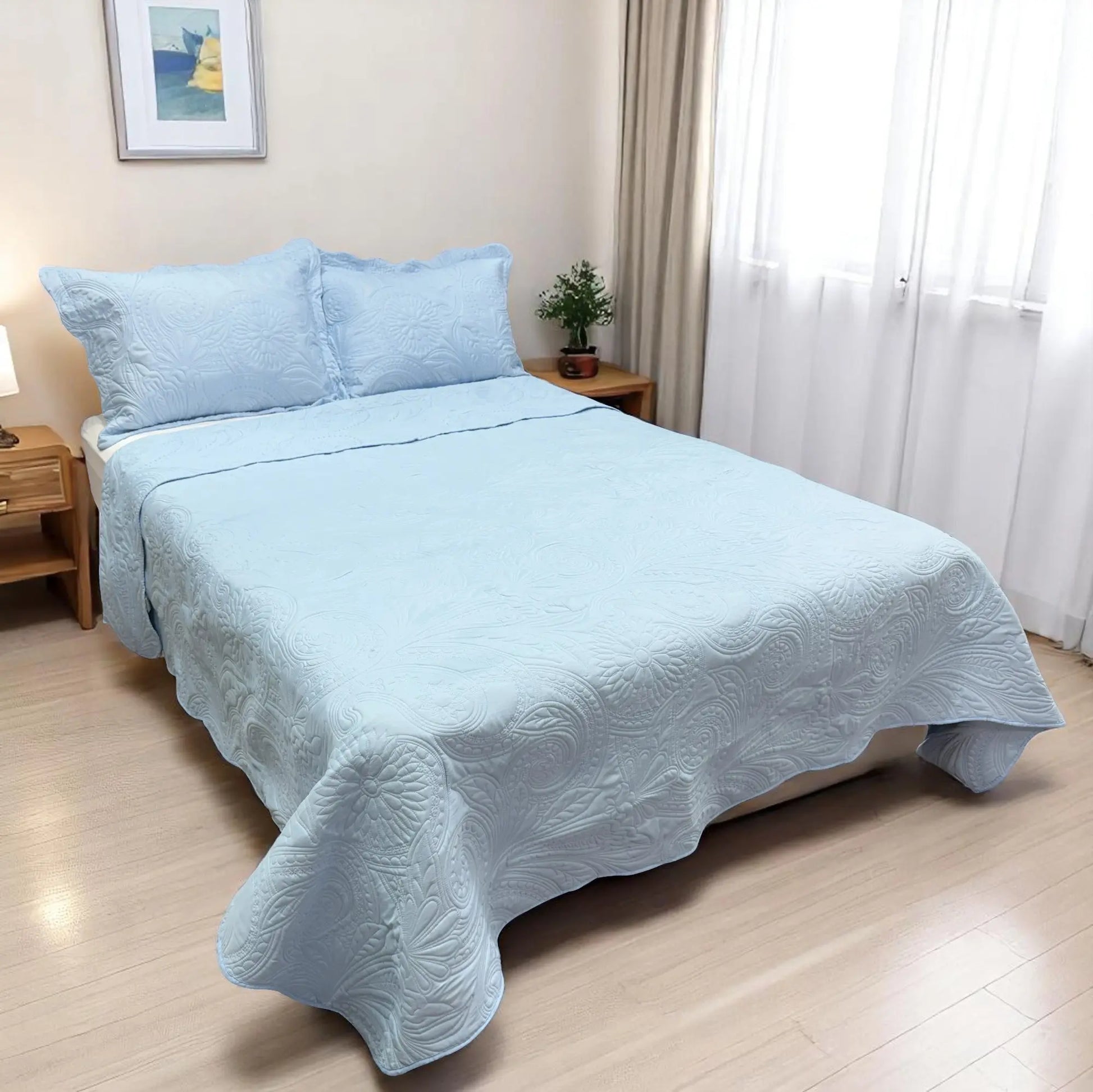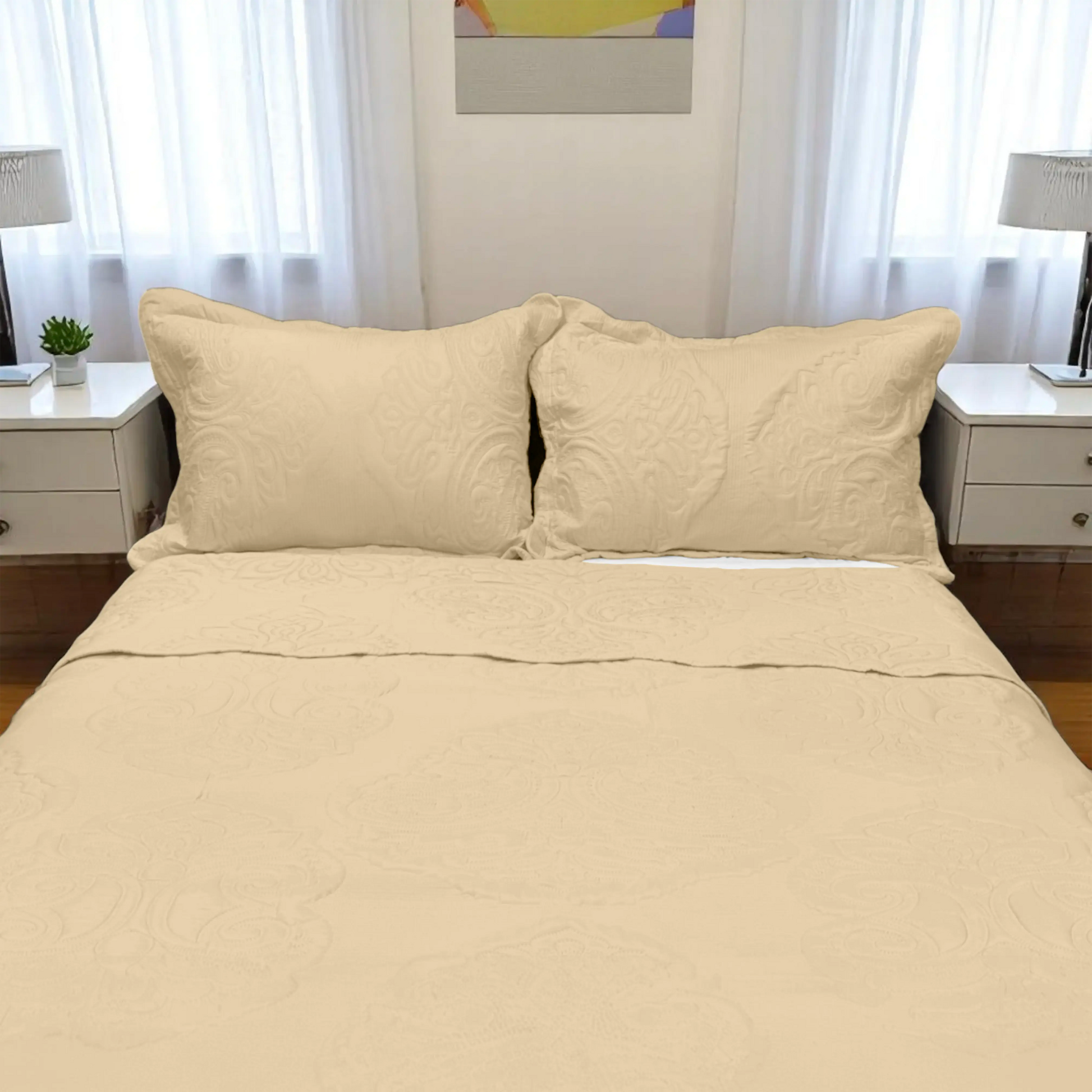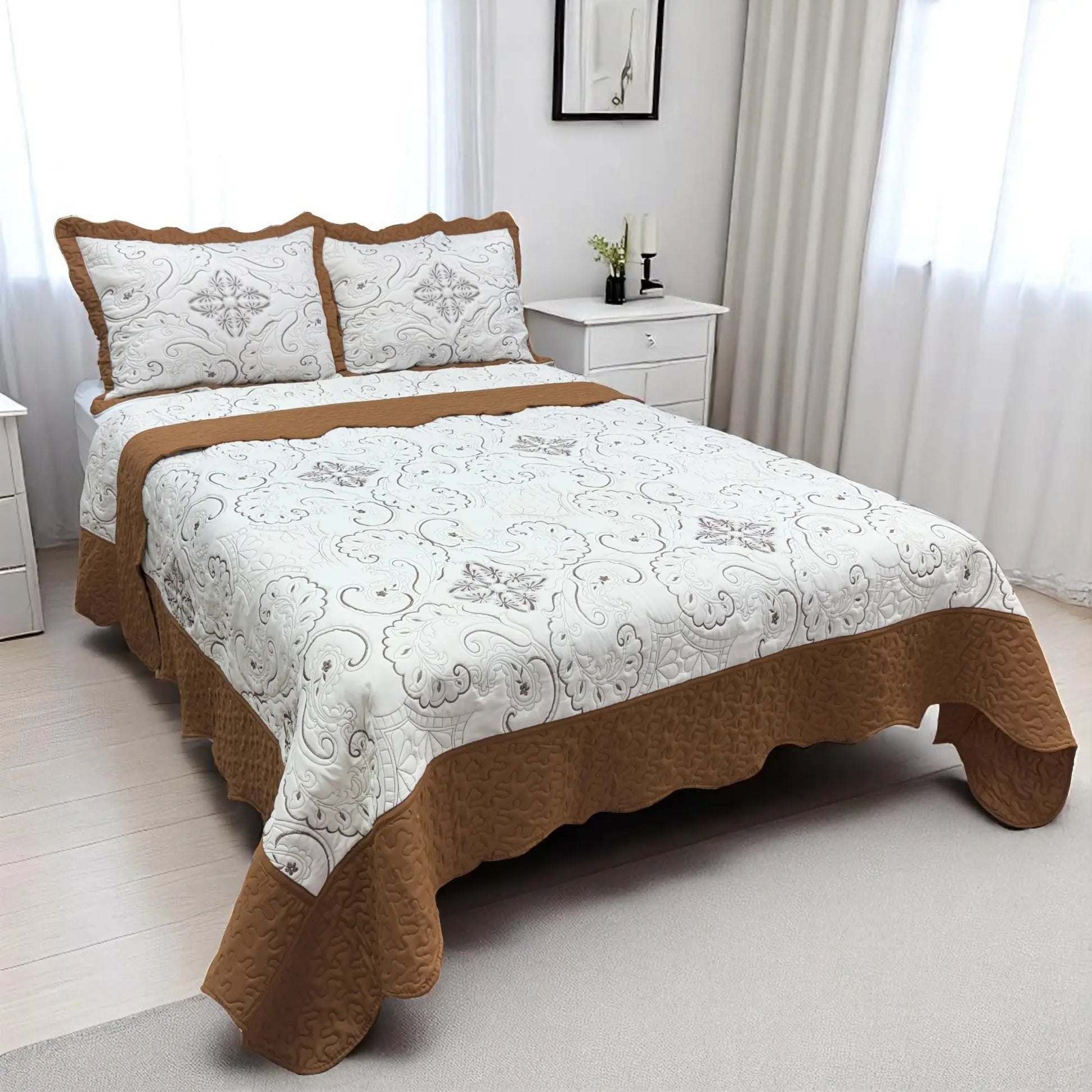 Las fundas de almohada incluidas combinan perfectamente con el cubrecama, creando una presentación uniforme y acogedora. Además, su material es fácil de lavar y de secado rápido, lo que te permite mantenerlo impecable sin complicaciones. Ideal para quienes buscan estilo, comodidad y practicidad en un solo set.