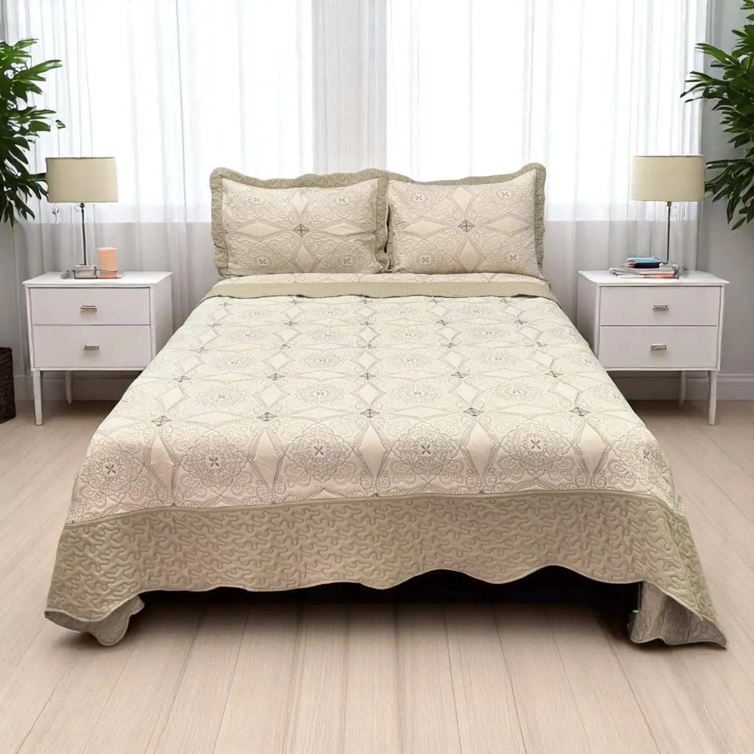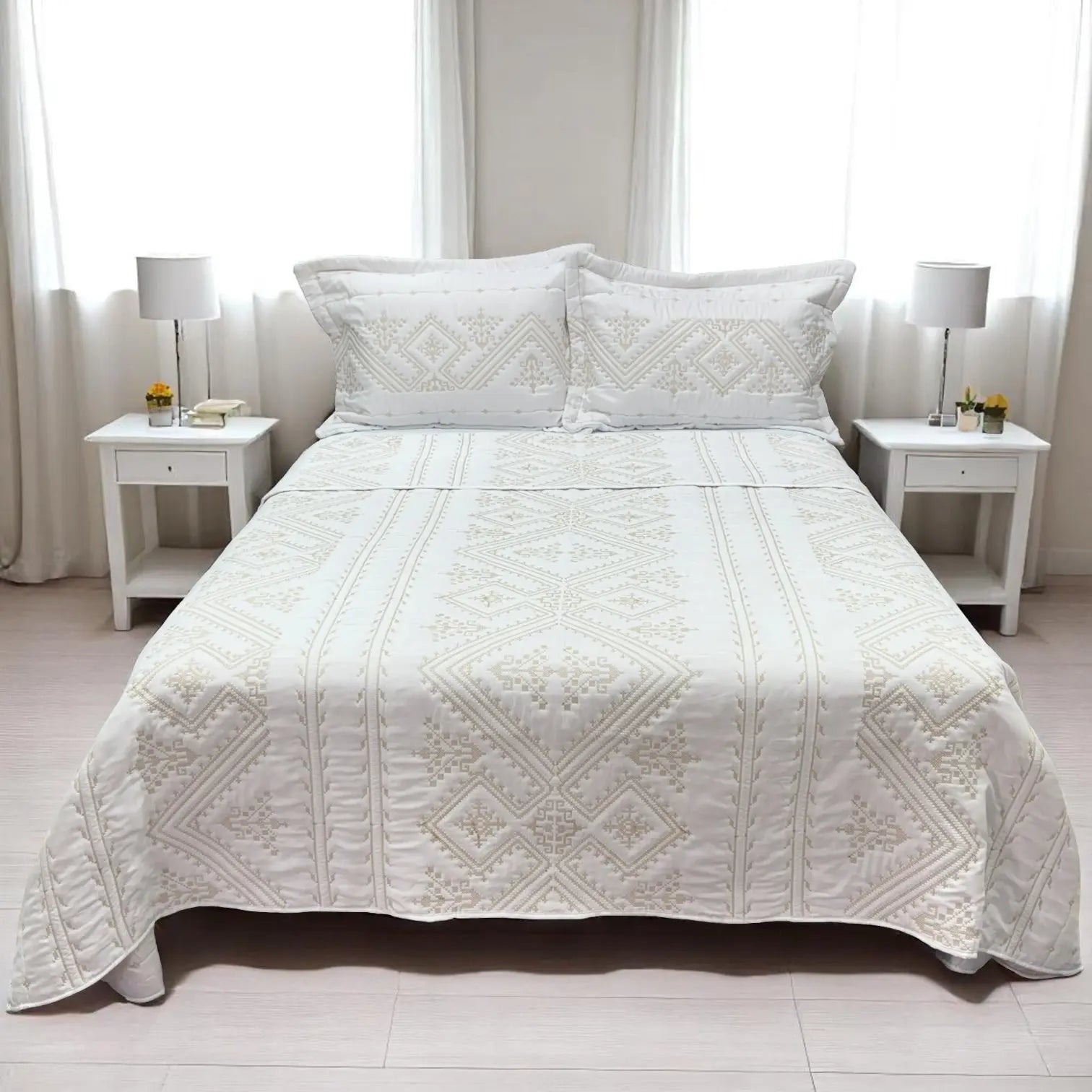 Transforma tu habitación con el encanto elegante de este Juego de Cubrecama Bordado. Su diseño delicadamente bordado añade un toque sofisticado sin esfuerzo, mientras que su confección en 100% microfibra y poliéster te brinda una sensación suave y ligera ideal para cualquier clima.