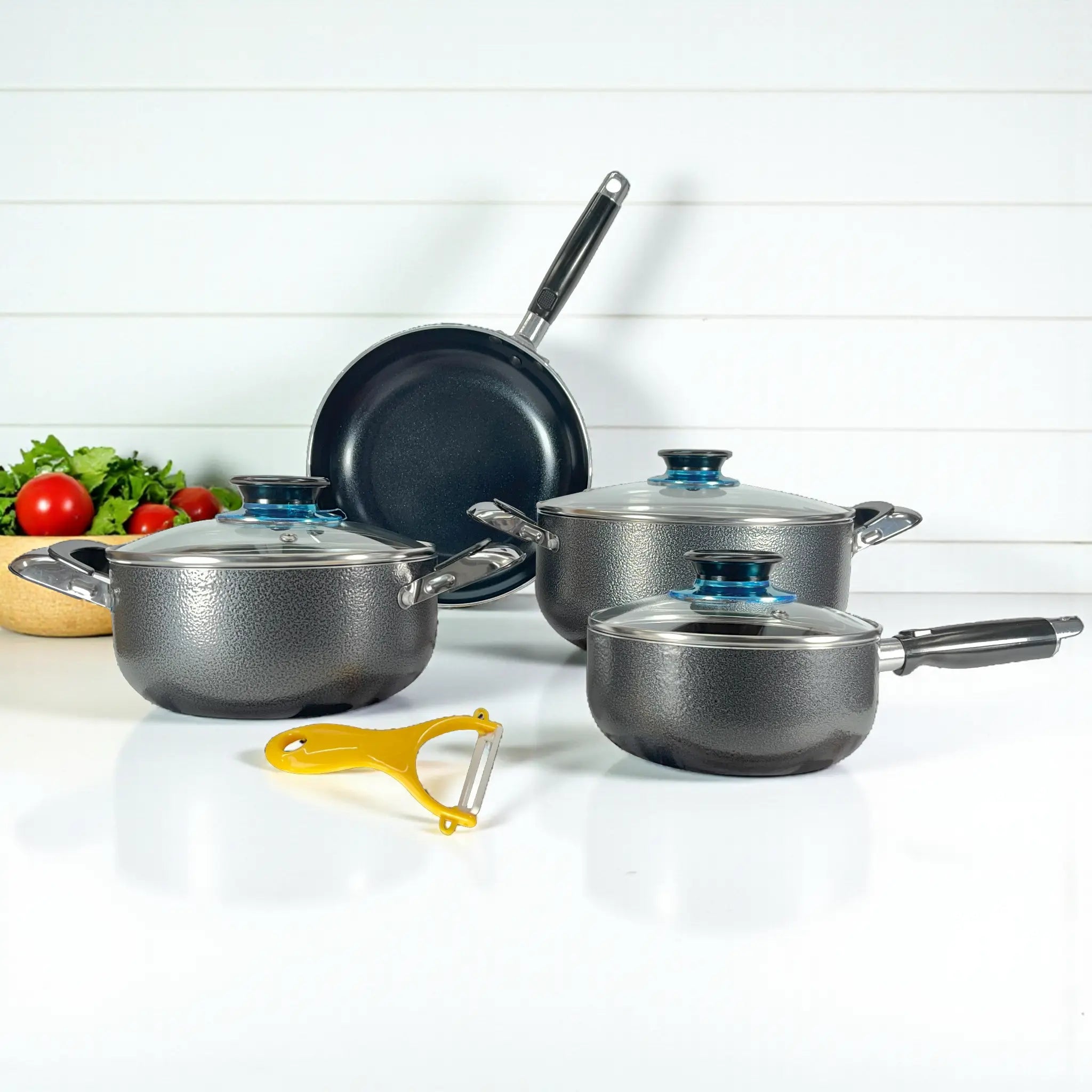 Este juego incluye ollas de diferentes tamaños, una cacerola y un sartén, perfectos para preparar sopas, guisos, pastas, arroces, salsas y platillos salteados. Además, es apto para lavavajillas, ideal para hogares que buscan funcionalidad sin sacrificar estilo.