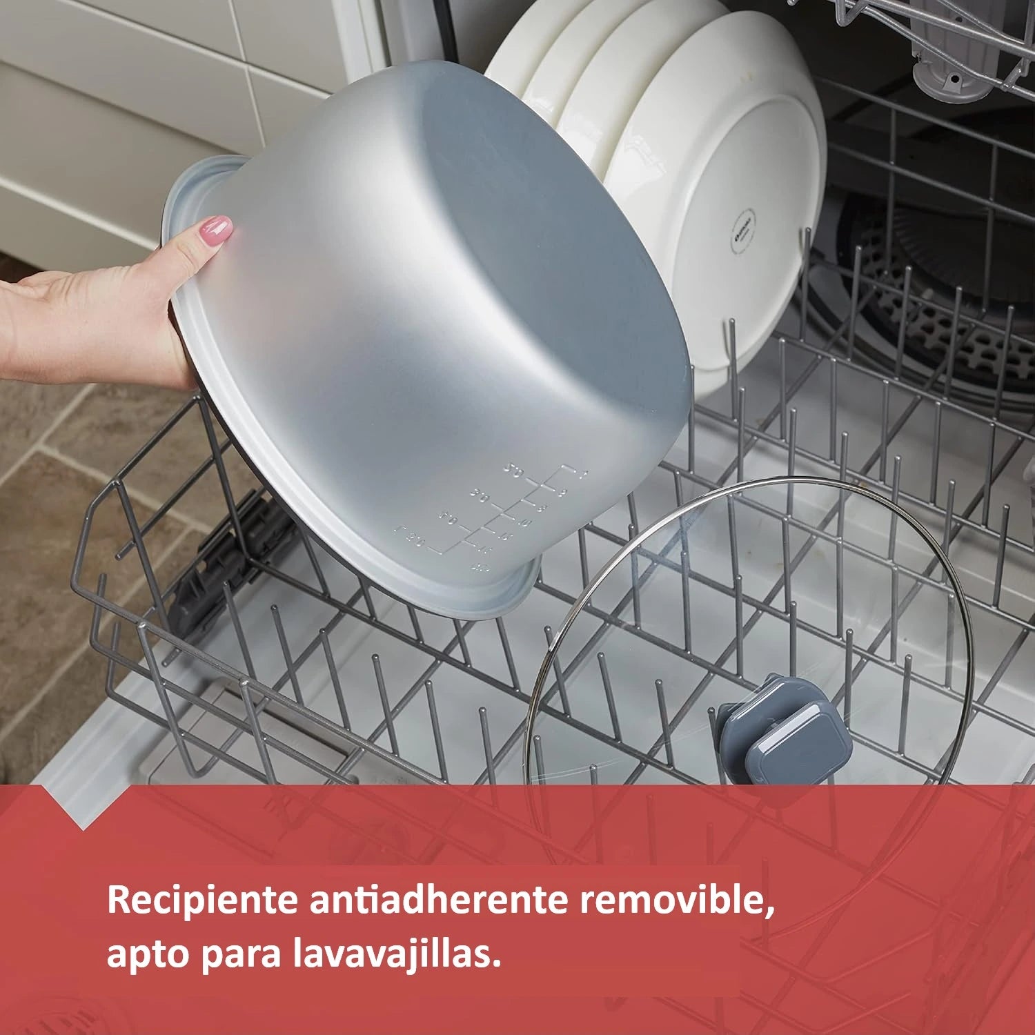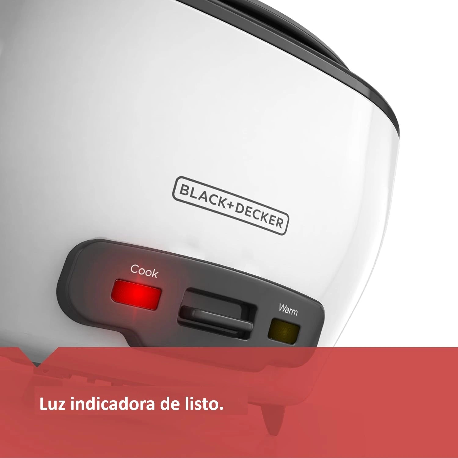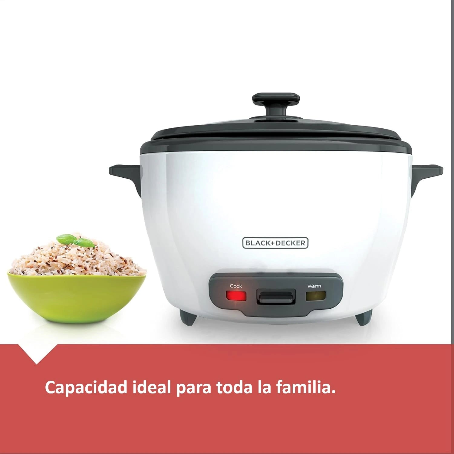 Cocina de forma práctica y sin complicaciones con esta olla arrocera Black+Decker. Con capacidad para hasta 6 tazas de arroz cocido, incluye función automática para mantener el calor, olla antiadherente removible y accesorios como canasta de vapor, cuchara y taza medidora. Ideal para preparar arroz y vegetales al vapor en porciones precisas y sin ensuciar de más.