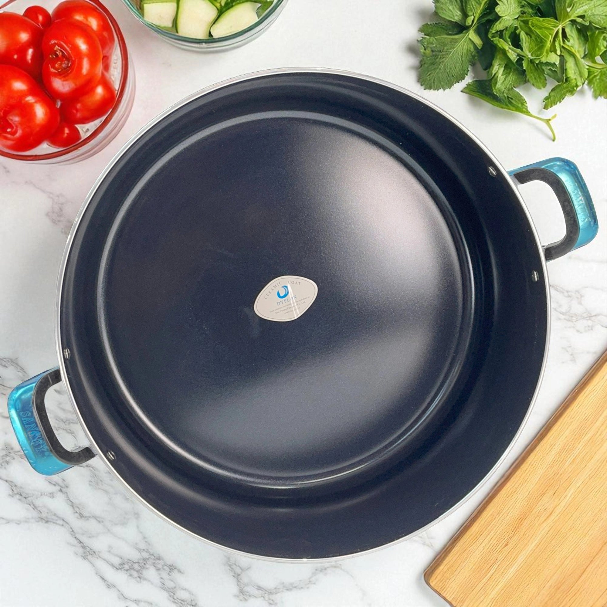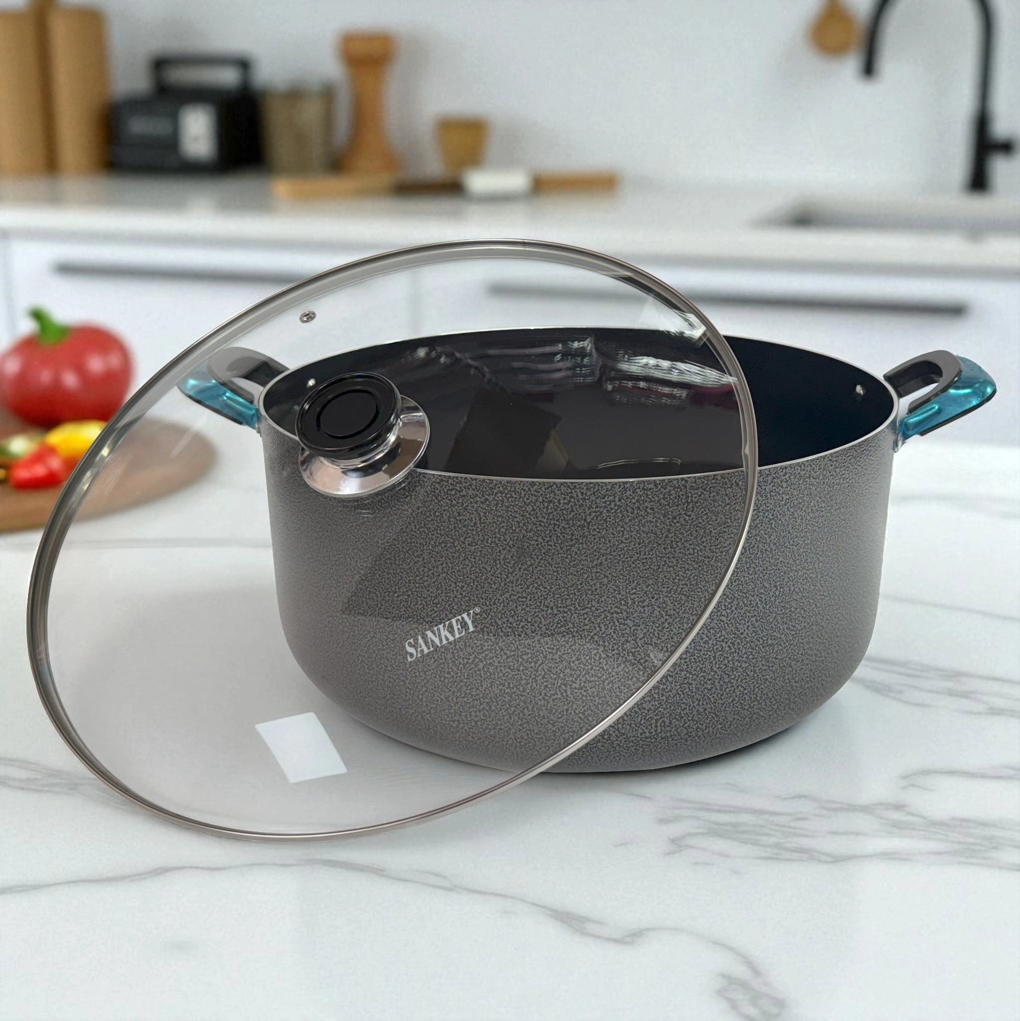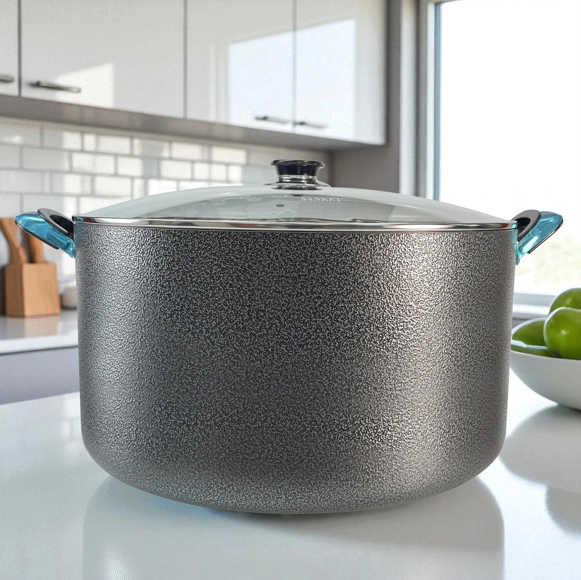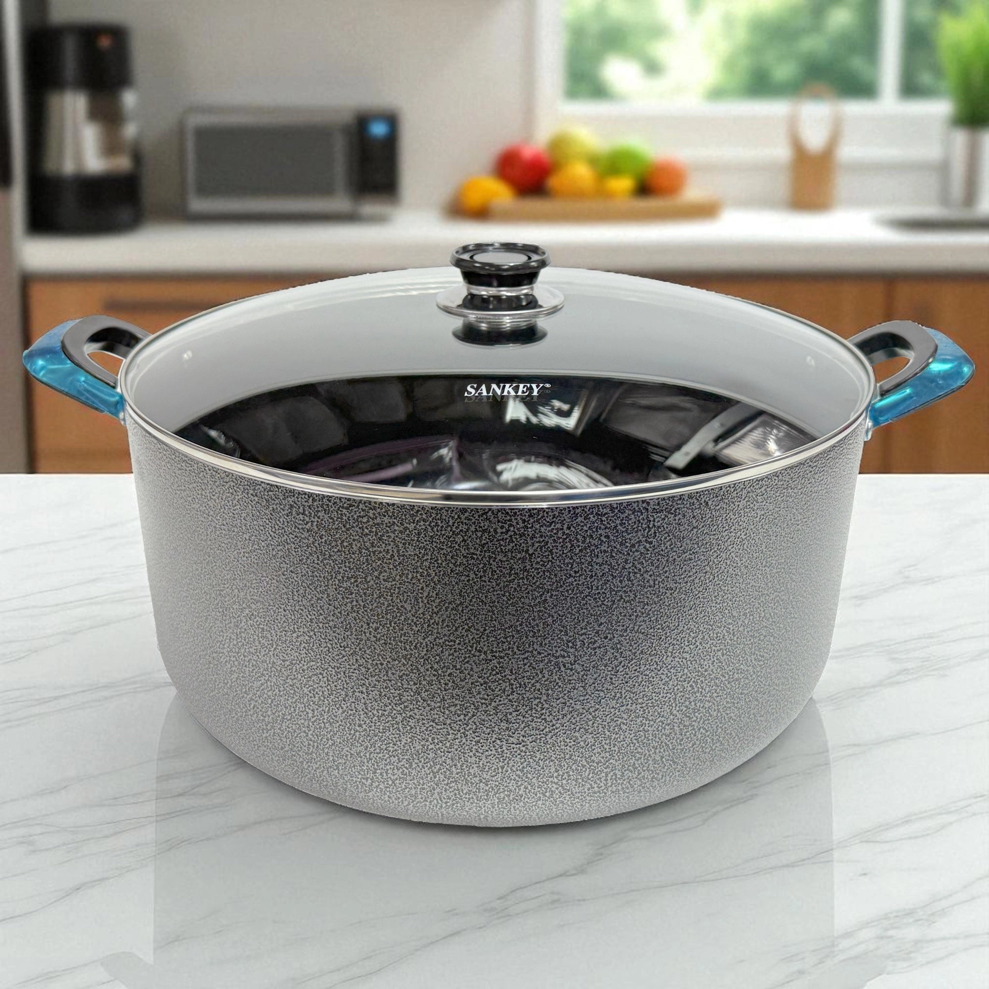 Descubre las ollas de cerámica antiadherente Sankey de 36, 38, 40 y 44 cm con tapa de vidrio , ideales para preparar desde sopas, guisos y pastas, hasta platillos más elaborados como caldos y cocidos familiares. Su amplio tamaño la hace perfecta para cocinar en grandes cantidades, ya sea en reuniones, comidas familiares o preparación semanal de alimentos.