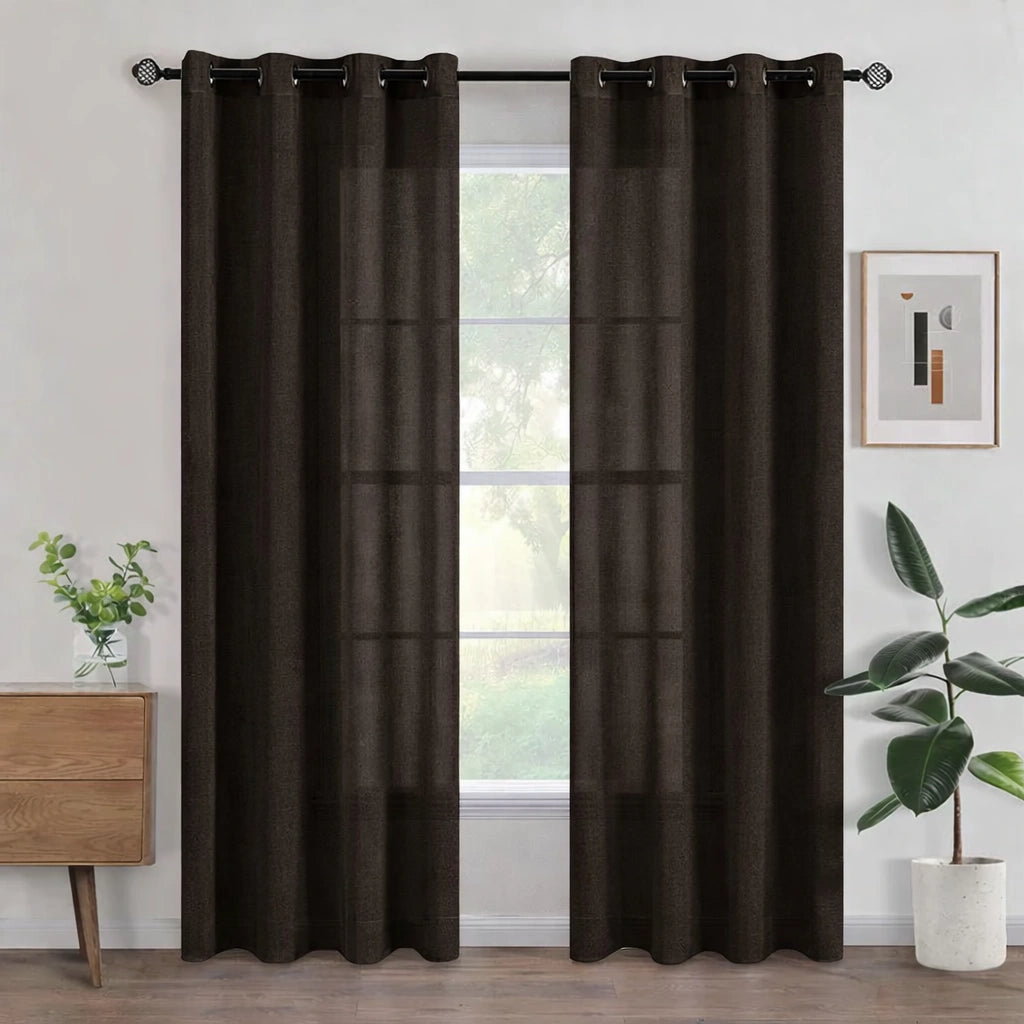 Decora tu sala, comedor o dormitorio con las elegantes cortinas transparentes Sahara de la marca Smiling Home. Este set incluye 2 paneles tipo sheer con ojales metálicos (grommets) que facilitan su instalación en cualquier barra estándar. Ideales para crear un ambiente moderno, dejar pasar la luz natural suavemente y mantener una atmósfera acogedora. Estas cortinas de poliéster son livianas, resistentes y fáciles de cuidar.