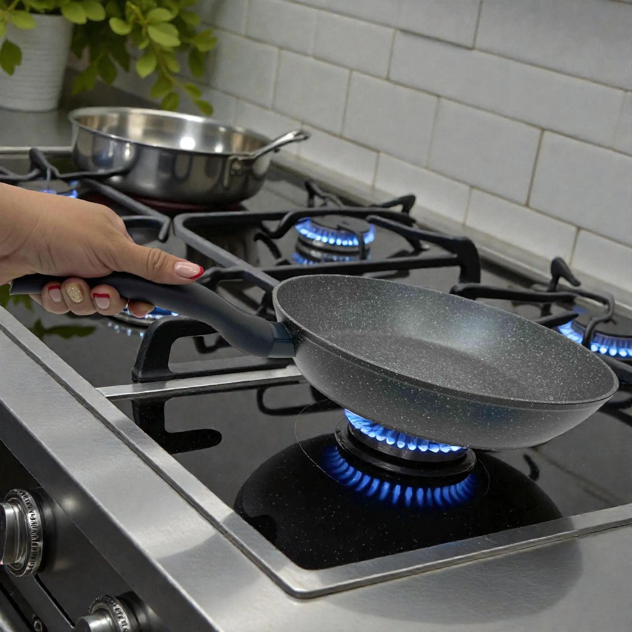 Gracias a su recubrimiento antiadherente Marble+, podrás cocinar con menos aceite, evitando que los alimentos se peguen y facilitando la limpieza diaria. Su superficie es resistente a rayones, duradera y apta para el contacto con alimentos, lo que la convierte en una opción segura para el uso cotidiano.