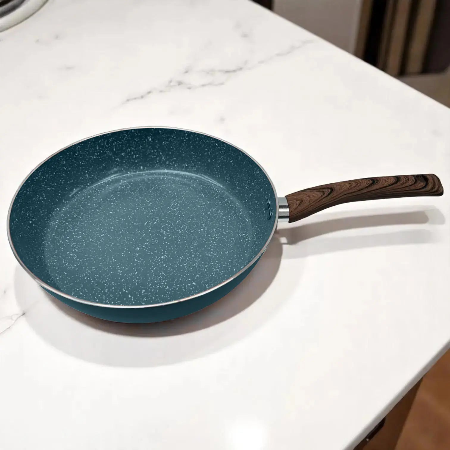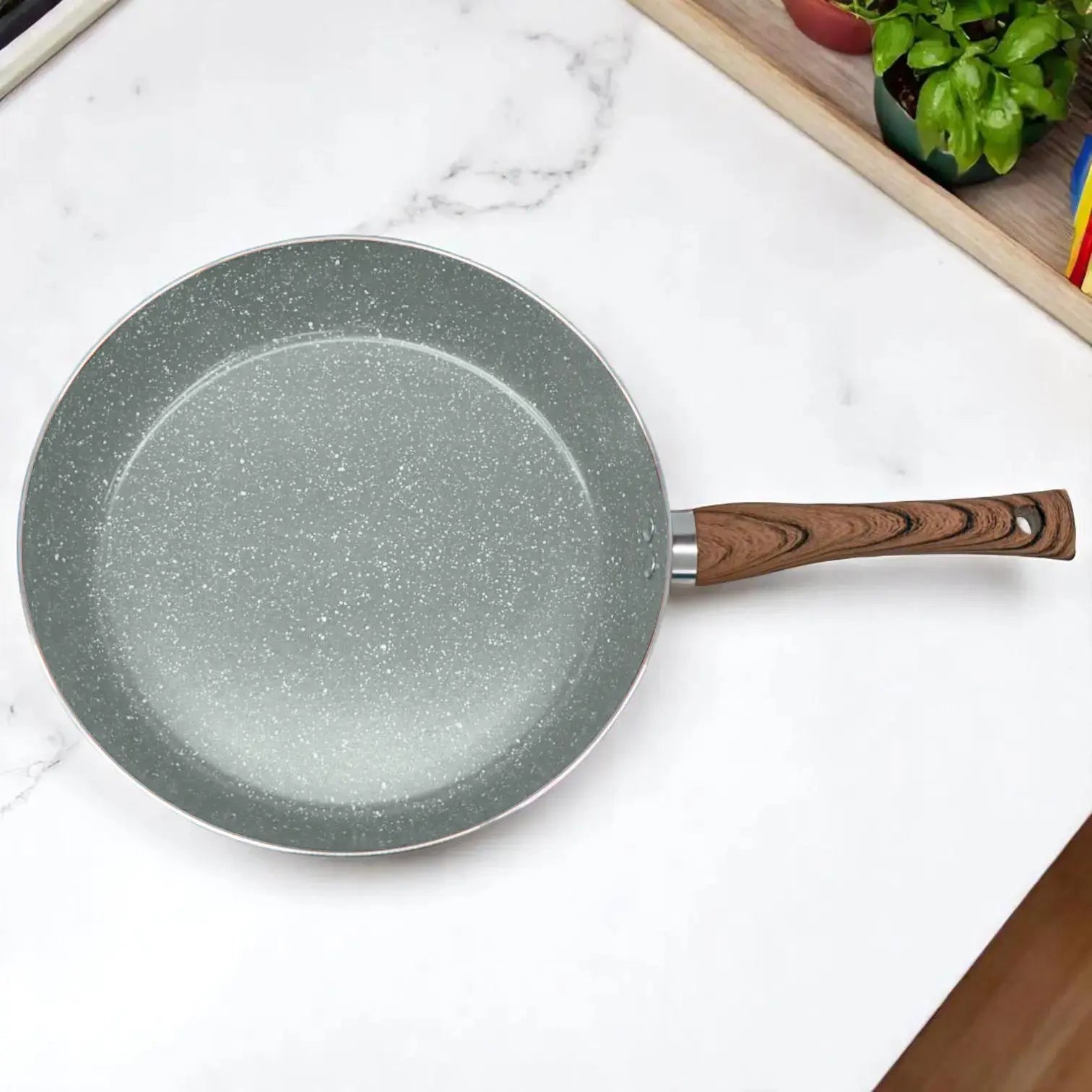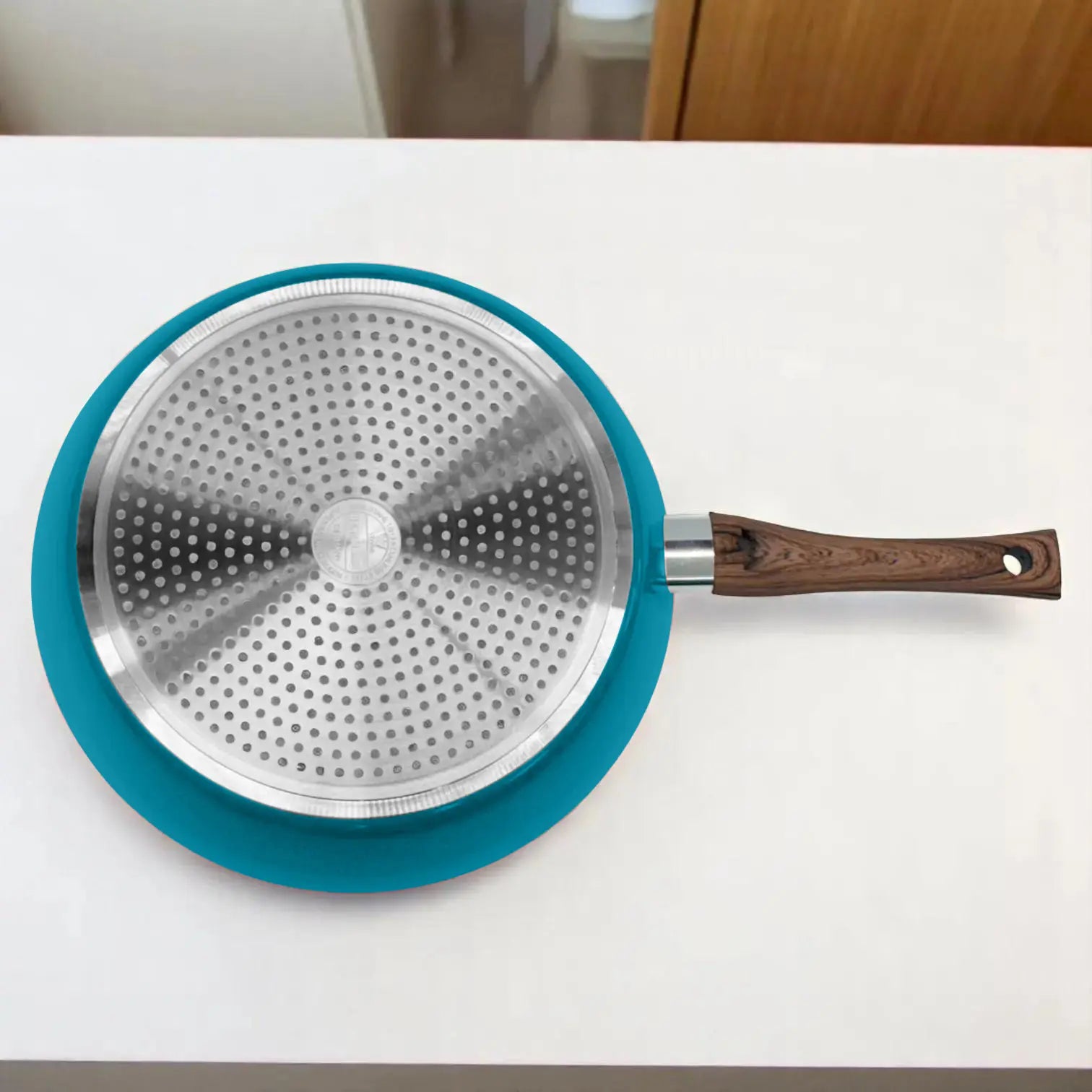 Fabricadas en aluminio liviano con recubrimiento antiadherente avanzado, permiten cocinar con menos grasa y facilitan la limpieza. Los mangos con acabado tipo madera son suaves al tacto, resistentes al calor y cómodos de usar, incluso por periodos prolongados.