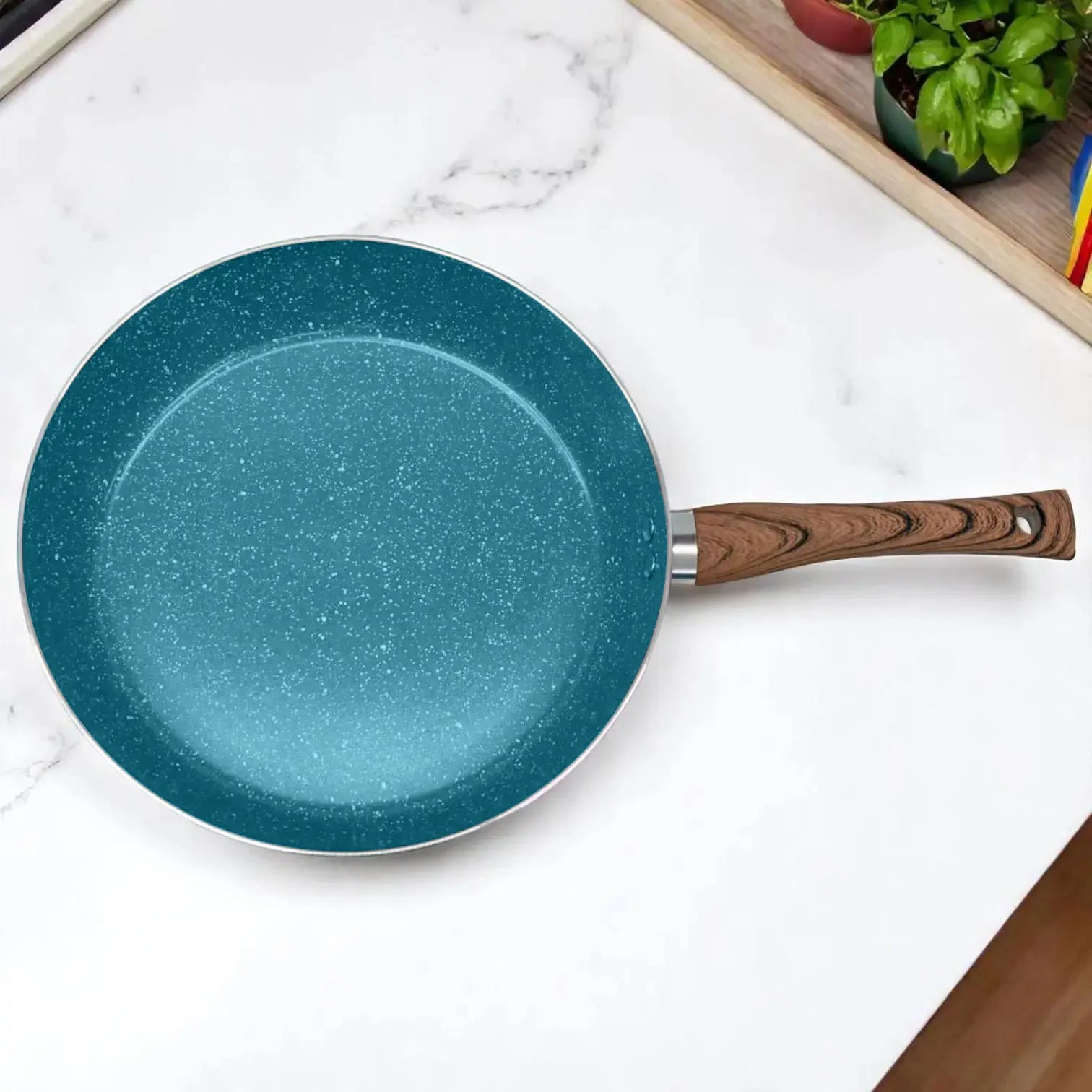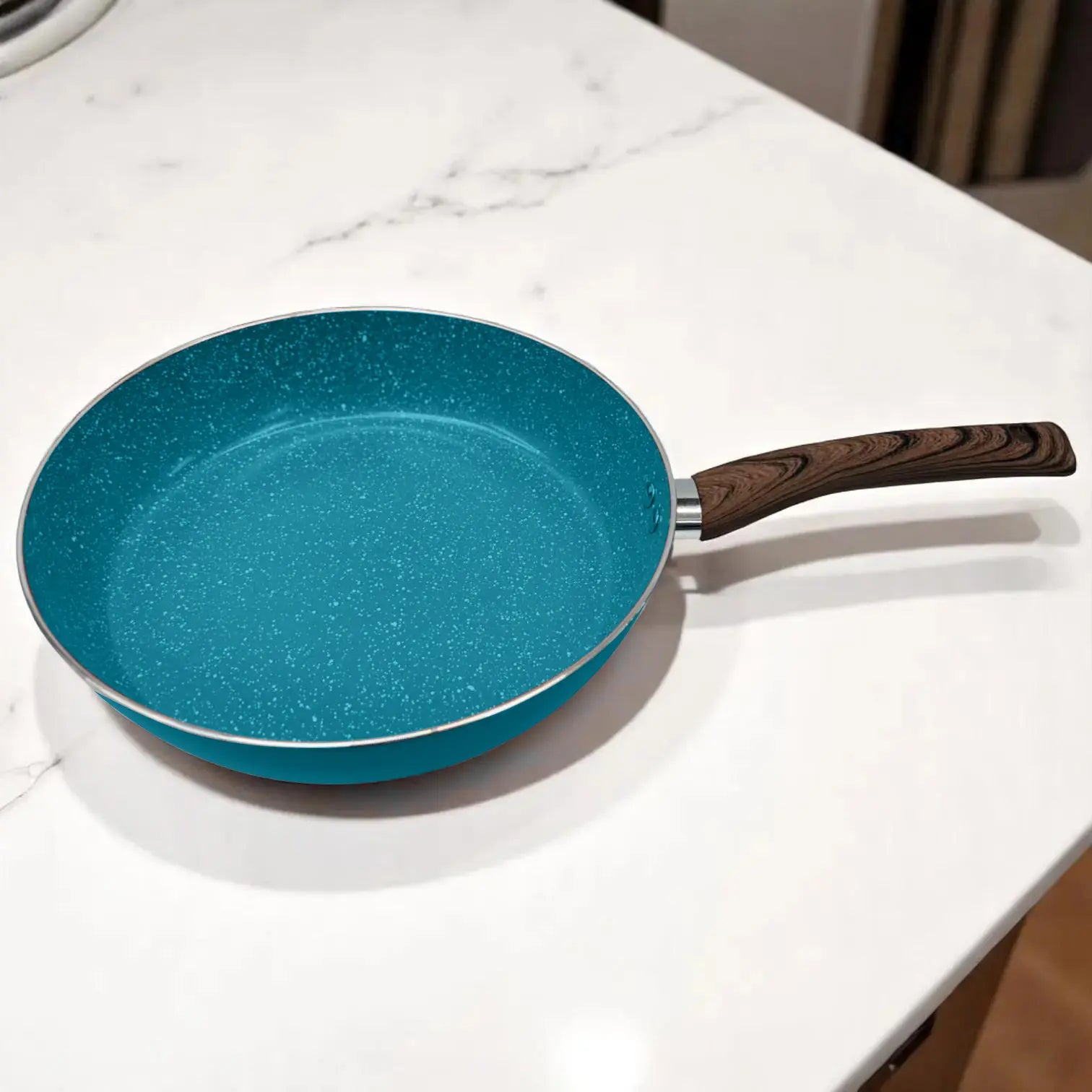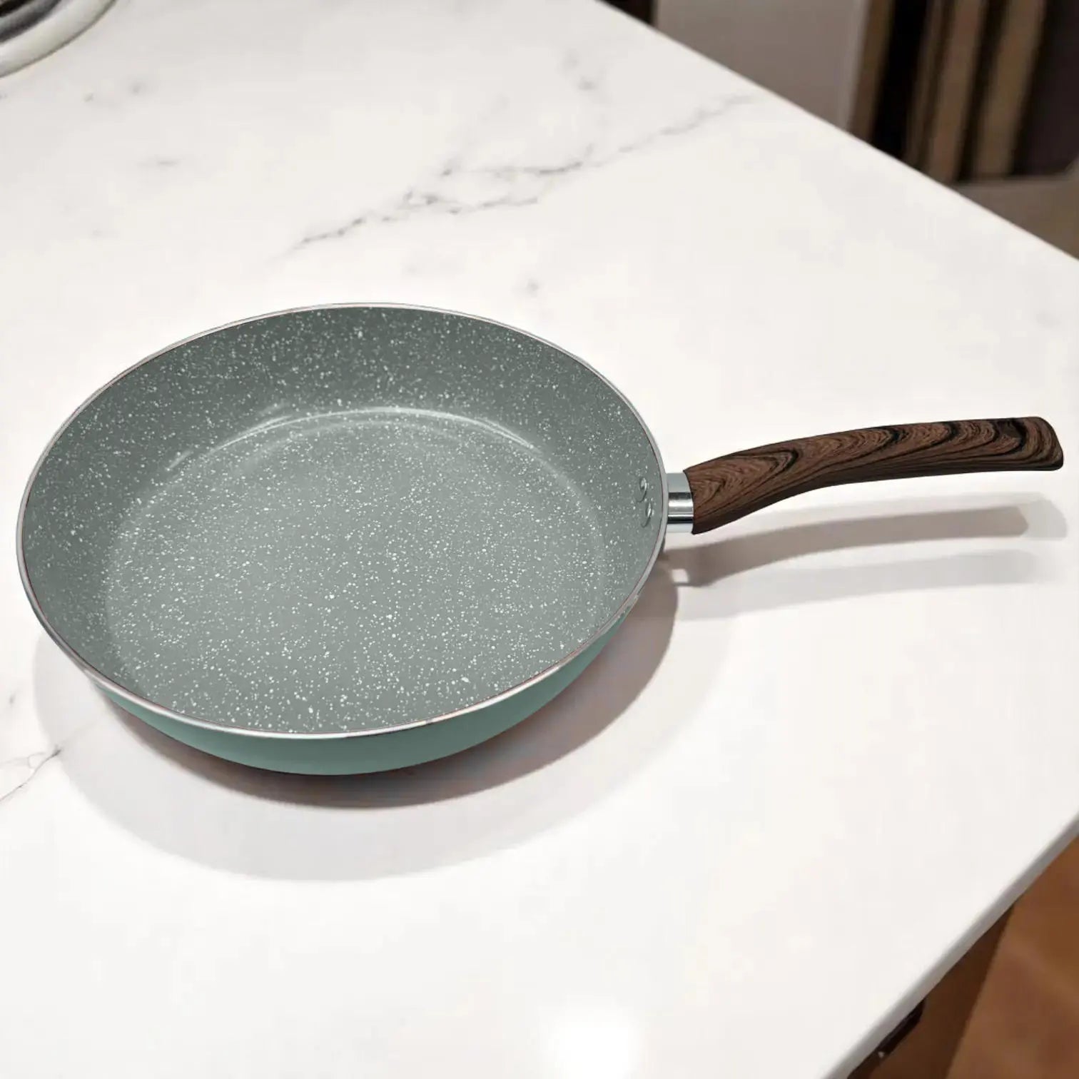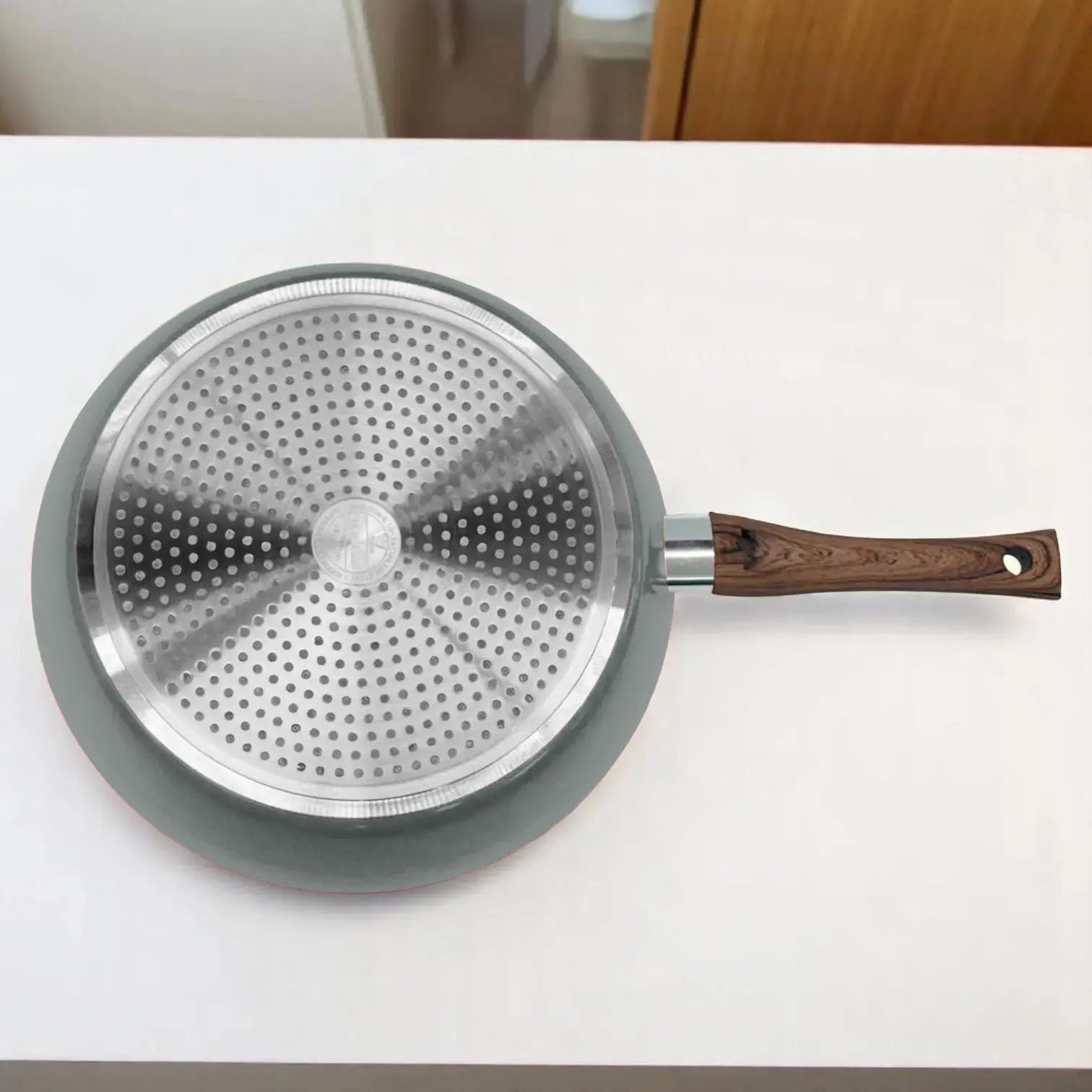 Fabricadas en aluminio liviano con recubrimiento antiadherente avanzado, permiten cocinar con menos grasa y facilitan la limpieza. Los mangos con acabado tipo madera son suaves al tacto, resistentes al calor y cómodos de usar, incluso por periodos prolongados.