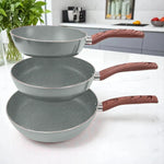 Set de 3 Sartenes Antiadherentes de Aluminio | Mango Tipo Madera | Bergmann